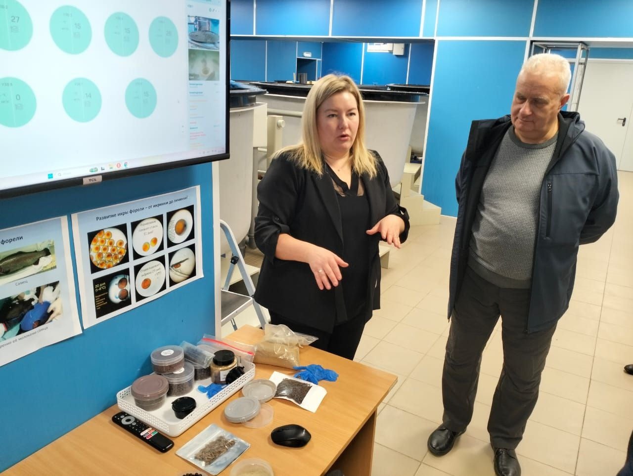 Во второй день работы представители Архангельской области побывали в селекционно-генетическом центре Петрозаводского университета, где познакомились с исследовательскими работами преподавателей и студентов, которые продемонстрировали системы дистанционного управления и сбора данных по среде обитания и параметрам рыб, рассказали орационах и нормах кормления.